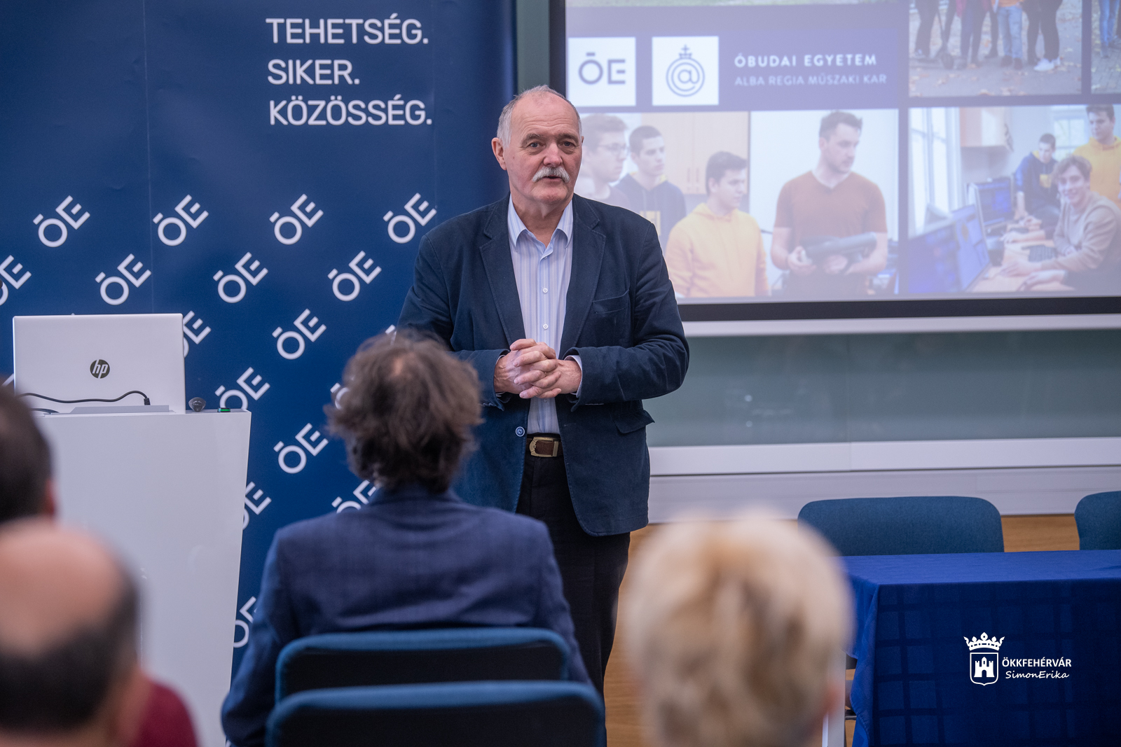 „Azért kértük önöket, hogy idefáradjanak, hogy vigyék a jó hírünket. Kiváló egyetem, kiváló karok találhatók Székesfehérváron.” – kezdte köszöntőjét Prof. Dr. Györök György, az Óbudai Egyetem Alba Regia Műszaki Kar dékánja. Mint fogalmazott, néhány éve az egyetem alapítványi fenntartású lett. Hozzátette, szerencsére egyre többen választják az Óbudai Egyetem Alba Regia Műszaki Karát, a hallgatók száma évről évre növekszik. Van mire büszkének lennünk, de sok munka áll még az egyetem előtt – fogalmazott a dékán, aki hangsúlyozta: az egyetem partnerként gondol a középiskolákra.