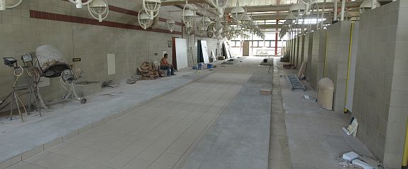 Felújítás alatt így nézett ki az öltőzősor. A munkát augusztus elején kezdték és a szokásos éves karbantartás ideje alatt befejezték. A szekrénysorokat fehérvári vállalkozástól vásárolták.
