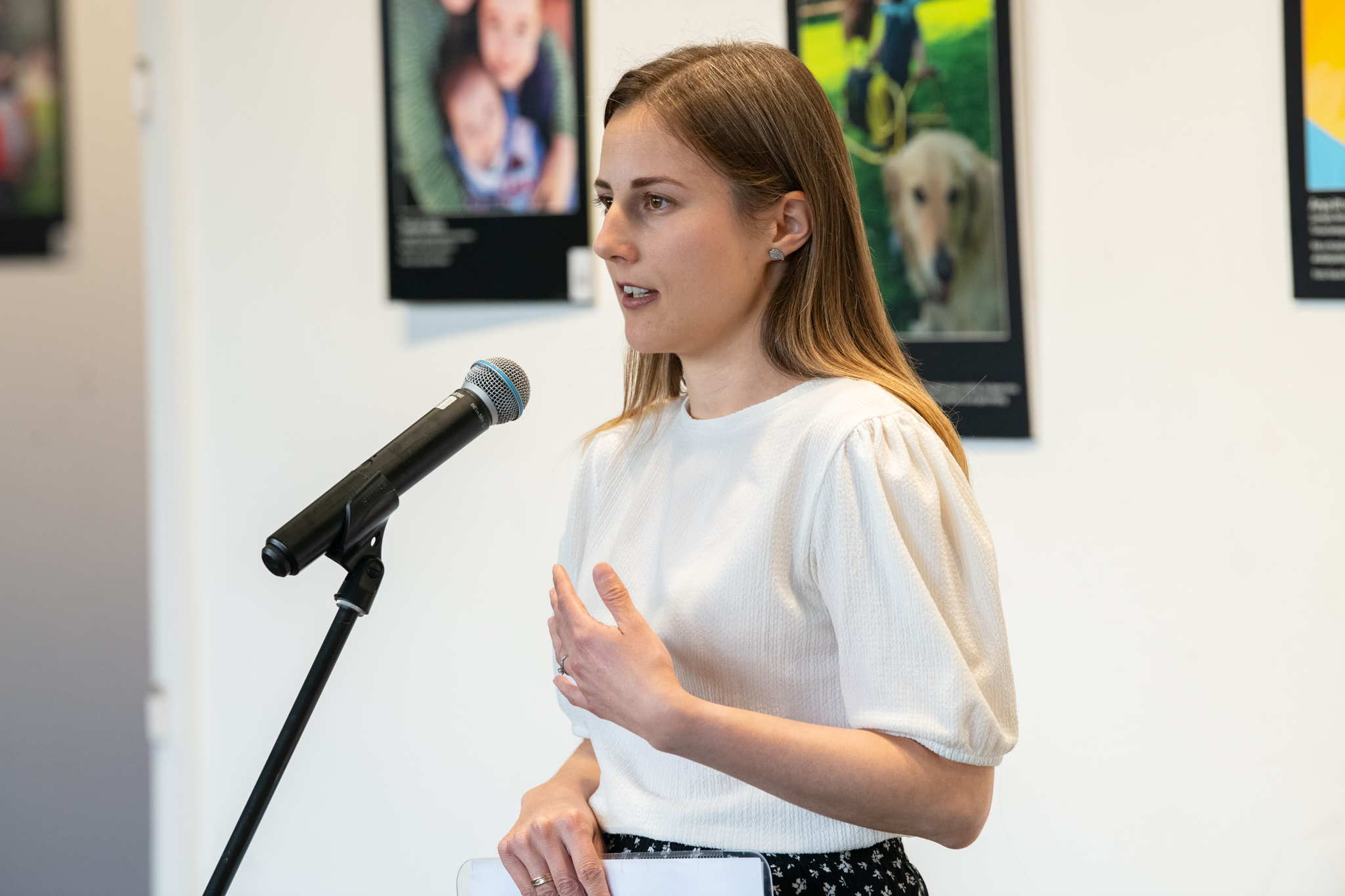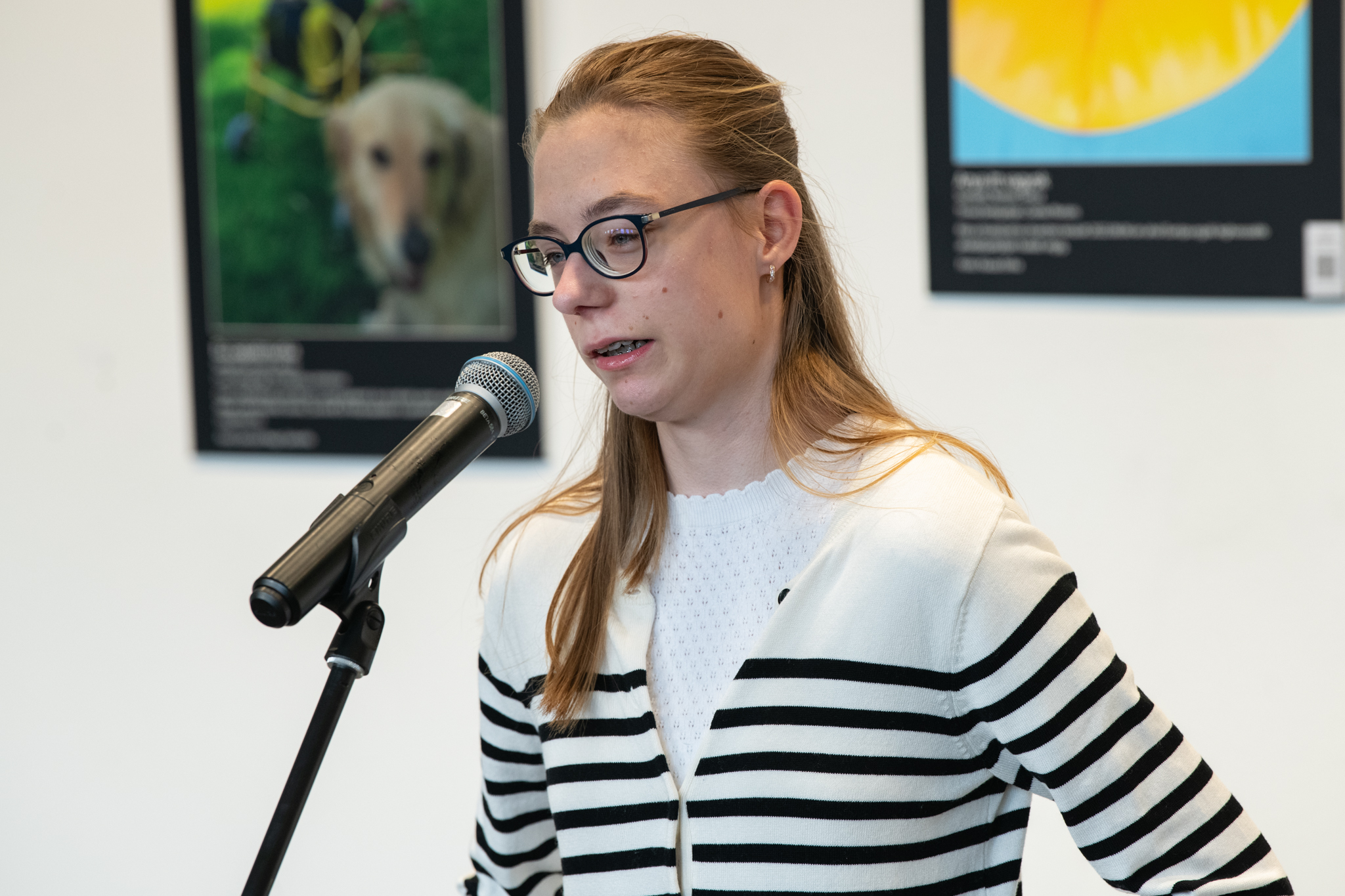 A köszöntőket követően Takács Melinda, az Arany János Óvoda, Általános Iskola, Szakiskola, Készségfejlesztő Iskola és EGYMI 8. osztályos diákja szavalta el Szabó Lőrinc: Lóci óriás lesz című versét, majd Sebestyén Zsófia, az Alba Bástya Család- és Gyermekjóléti Központ fogyatékosságügyi tanácsadója röviden bemutatta tevékenységét, amelynek az akadálymentesítésen, az információkban való eligazodáson túl nagyon fontos aspektusa a társadalmon belüli válaszfalak lebontása, áthidalása.
