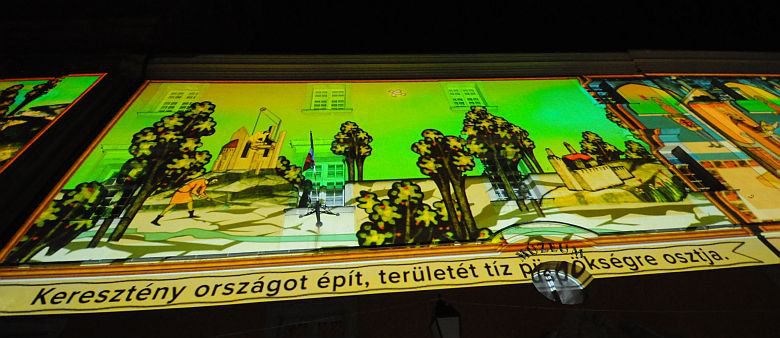 Fény utca - Szent István élete 1200 négyzetméteren a Fő utca házfalain