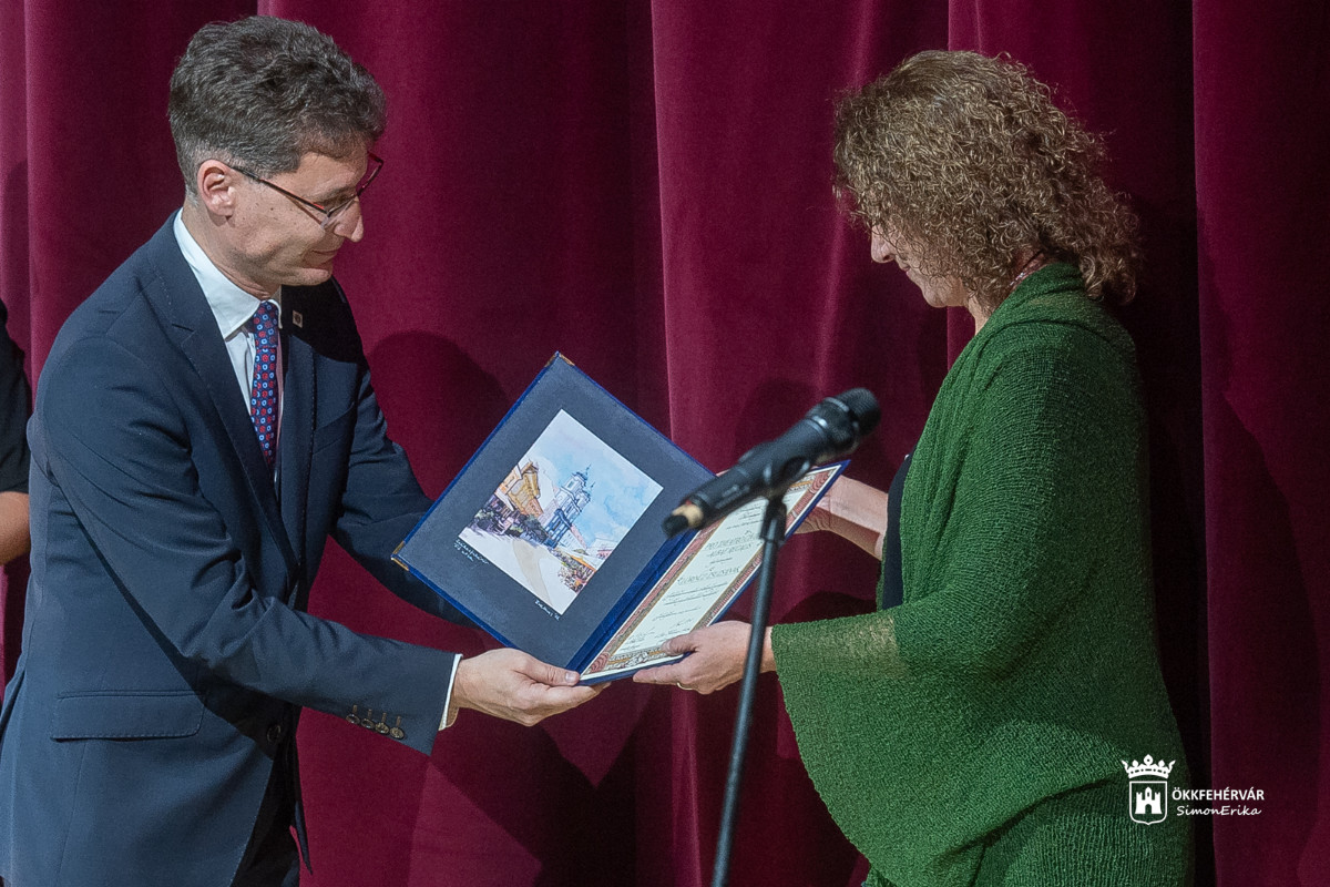 Az idei évben Székesfehérvár színházi értékeinek gyarapítása érdekében végzett kiemelkedő munkájáért Ferenczy Noémi vehetett át díjat.