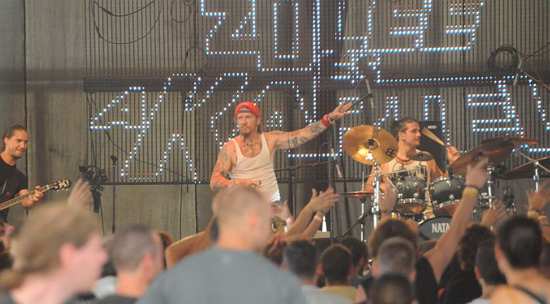Ganxsta együttese a nagy meleg és a viszonylag korai kezdés ellenére a Media Markt Színpad sátor közönségét teljesen fel tudta rázni: a kiáltós hangerőpróba, a tapsolás, és a megunhatatlan „Bumm a fejbe” skandálást még a legnagyobb metálrajongók is maguknak érezték.Már a késő délutáni órákban is sokan keresték fel a Média Markt Színpadot, ahol a Ganxsta Zolee & a Kartel lépett fel, illetve a FEZEN Csarnokot, ahol az Ismerős Arcok adott koncertet. Az Ismerős Arcok csak augusztusban húsz helyen lép fel, a FEZEN-en második alkalommal zenéltek. A Nagyszínpadon a Road, a zenekartól megszokott profizmussal pörgette fel a közönséget. Ozsváth Ádám, utánpótlás jégkorongozóba ezen a koncerten botlottunk bele. A fiatal sportoló lélekben hangolódott az esti Tankcsapdára, de már korábban kijött, hiszen Ganxsta Zolee zenekara este hatkor csapott húrok közé, és őket is meg akarta nézni.