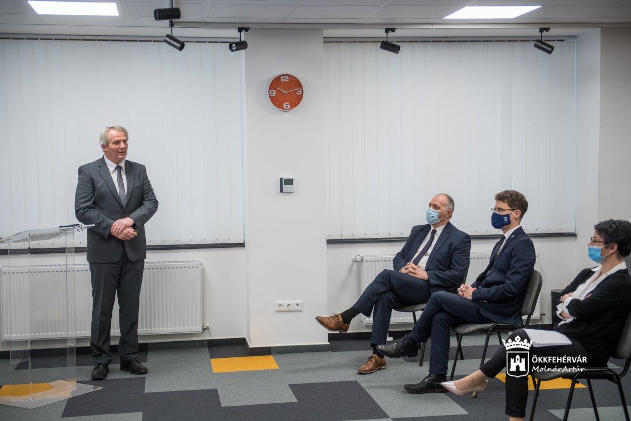 Az idén tavasszal elinduló fejlesztésekről Dr. Zugor Zsuzsanna, az Alba Regia Helyi Közösség Helyi Akciócsoport elnöke beszélt, aki ismertette az épület földszintjének tervezett átalakítási folyamatát. „Átépítik a recepciós pultot, kialakítanak egy e-sport „edzőtermet” és megnyihat egy kis kávézó is az épületben, továbbá új, az akadálymentes bejutást segítő rámpa is lesz.” - ismertette Dr. Zugor Zsuzsanna. Az eseményen részt vett Mészáros Attila, Fehérvár alpolgármestere is.