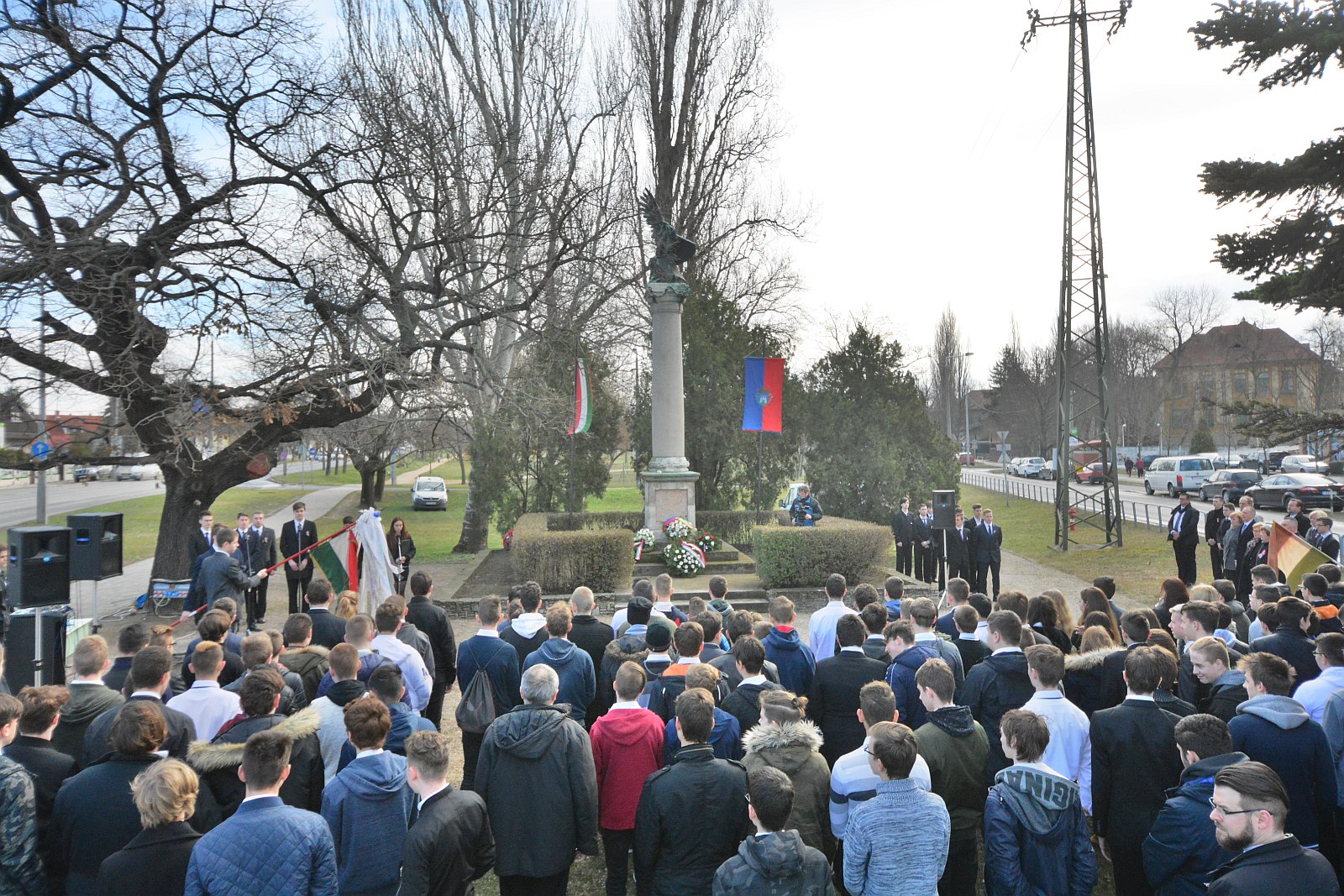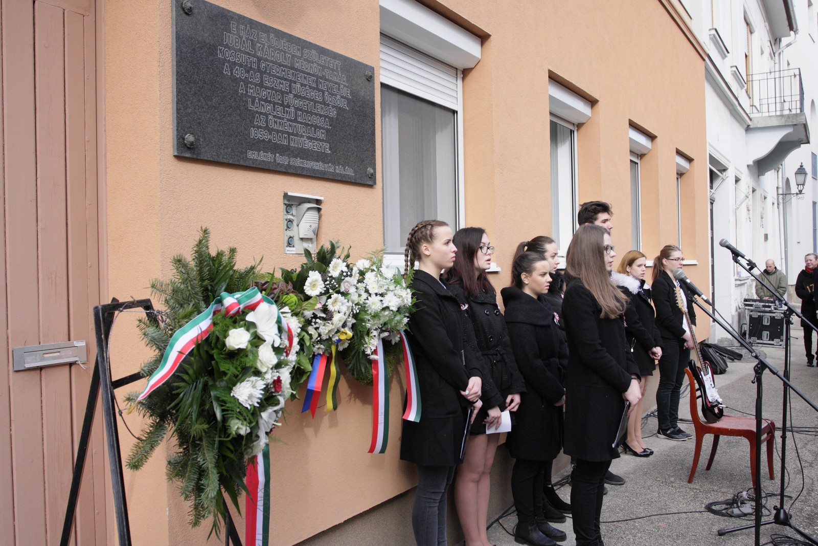 A diákok felidézték a forradalmi eseményeket a szobor előtt, a színes műsort követően pedig Mészáros Attila alpolgármester, valamint a megyei önkormányzat részéről Tanka Csaba koszorúztak.