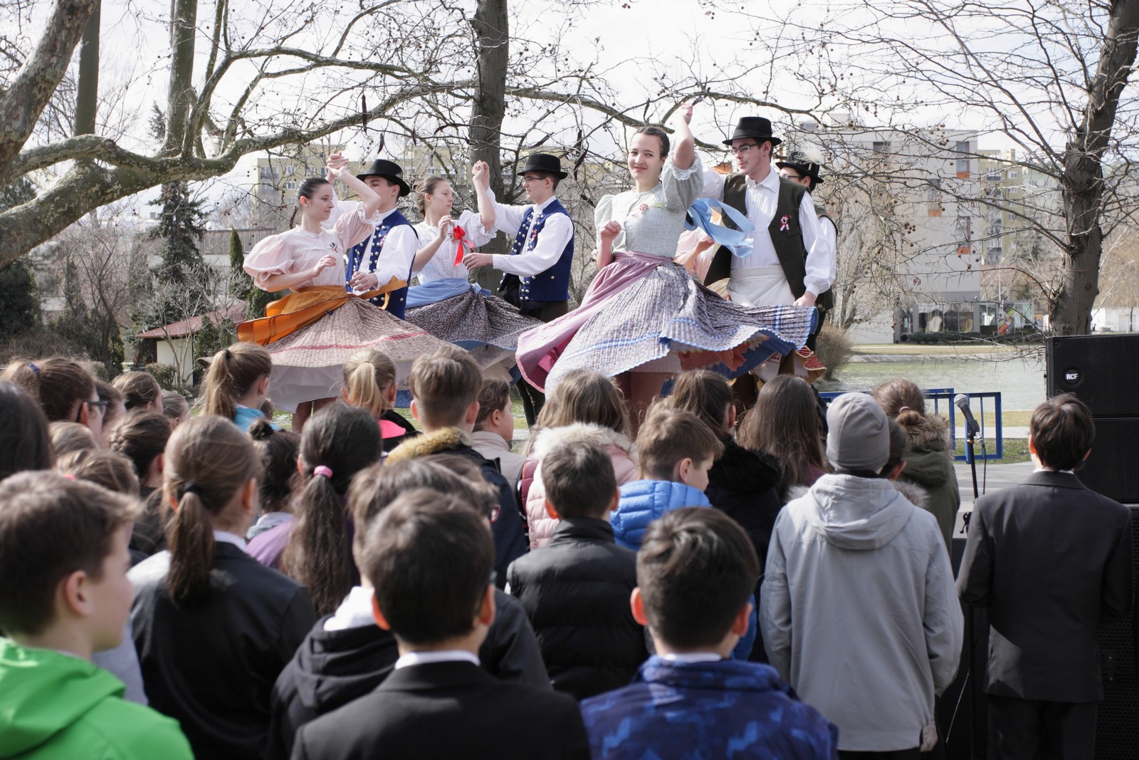 A Petőfi Kultúrtanszék előtt a Székesfehérvári Hunyadi Mátyás Szakközépiskola szervezett műsort.