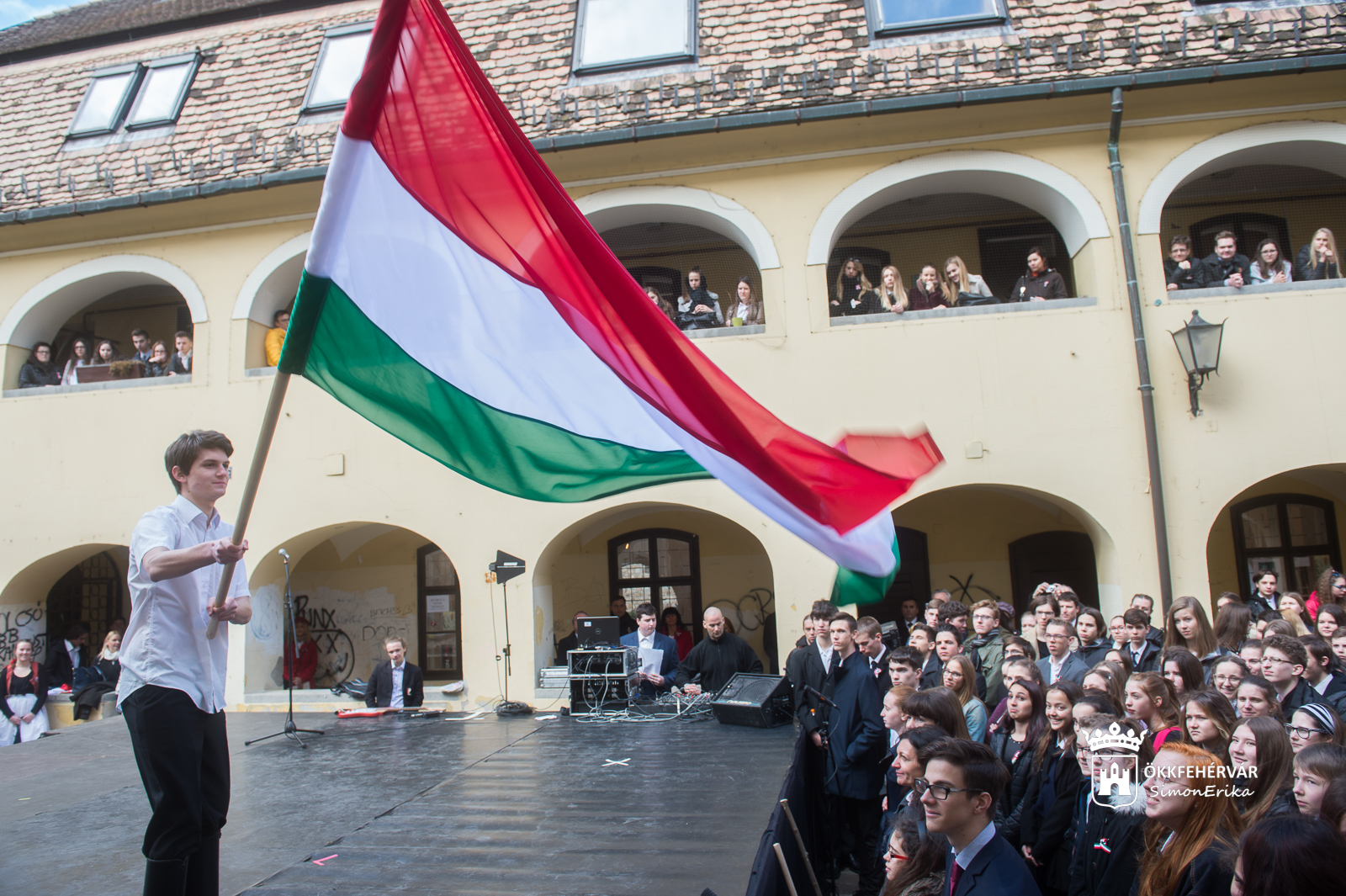 A Rónai Jácint emléktáblánál megtartott ünnepségen az iskola minden diája részt vett. A műsorban megemlékeztek Rónai Jácintról, az egyházi népszónokról, aki 204 évvel ezelőtt született Székesfehérváron és a forradalom kitörése alapjaiban változtatta meg életútját. Személye megjeleníti a római katolikus egyházban – a forradalom és szabadságharc időszakában – a magyar honvédelem és szabadság mellett lelkesen buzdító felvilágosult papságot. A szabadságharc alatt számos röplap és plakát jelent meg Rónay aláírásával, amelyek közül csak keveset ismerünk. Ezek közül néhány Székesfehérvárra is került. Így az 1849. június 22-én Győrben nyomtatott "Magyarok" című felhívása, amelyben a nemzeti egység, a szabadság és a függetlenség mellett érvelt az egyházi népszónok. Az ünnepségen koszorúzással rótta le tiszteletét a ’48-as hősök előtt Fejér Megye Önkormányzata nevében Tanka Csaba alelnök, Székesfehérvár Megyei Jogú Város Önkormányzatának képviseletében Égi Tamás alpolgármester, valamint a Városi Levéltár és Városszépítő Egyesület nevében dr. Csurgai Horváth József.