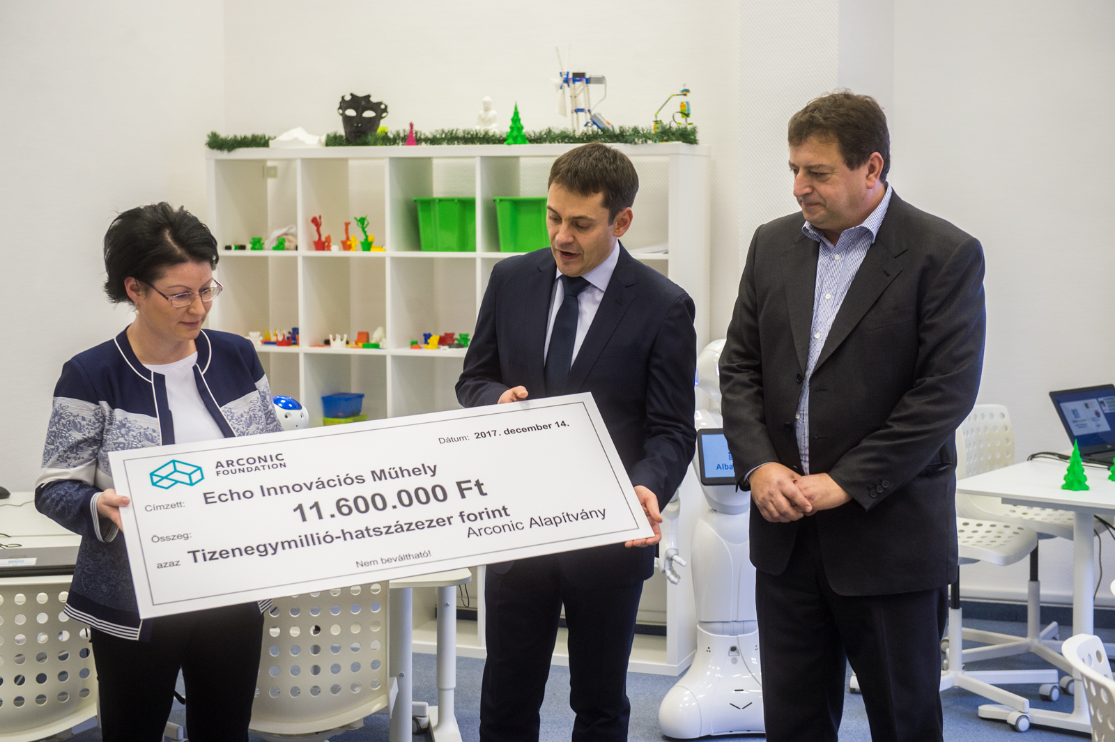 „Az Arconic Alapítvány olyan képzési programokat támogat, amelyek segítenek a XXI. századi mérnökök és a korszerű gyártóipari szakmunkások szakmai felkészítésében. Partnereinkkel együttműködve kezdeményezéseinkkel elérhetővé tesszük a minőségi STEM (mérnöki, természettudományos, matematika és informatika) tanulmányok elsajátítását a diákok számára; támogatjuk a mérnöki és technológiai készségek fejlesztését.” – mondta az ünnepség alkalmával Katus István, az Arconic országigazgatója, majd átadta a kedvezményezetteknek a 11,6 millió forintos támogatásról szóló csekket.