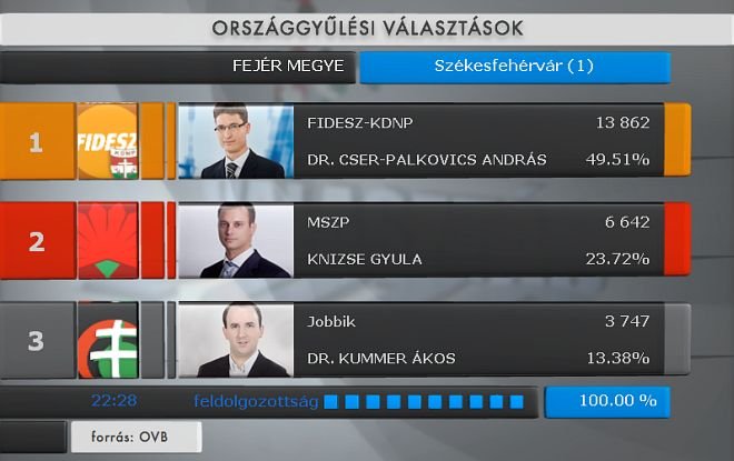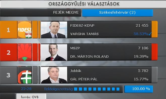 Fidesz győzelem Fehérváron - Vargha Tamás 58.53, Dr. Cser-Palkovics András 49.51