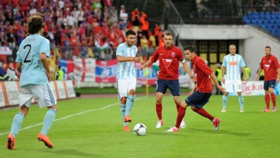 Az óvatos csapatok meccsén váratlanul pörgött fel és szerzett vezetést a Slovan: Sebo vehetett át tisztán egy jobb oldali beadást, és szépen kilőtte a bal alsót a 27. percben. Mielőtt a mintegy ezer fehérvári szurkoló nagyon magába zuhant volna, válaszolt a Vidi! Sándor tört előre, megjátszotta Oliveirát, aki a 16-oson belülről remekül csavart jobbal a bal felső sarokba. Kulturáltan fociztak a felek, alapvető biztonságra törekvés jellemezte őket, a félidő végén Gyurcsó még szépen került lövőhelyzetbe, de éles szögből próbálkozott és blokkolták.