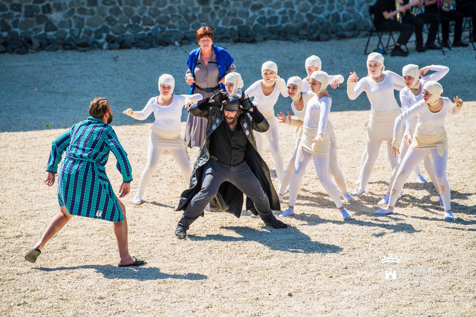 A vidám produkció főszerepeit Keller János és Kelemen István, a Vörösmarty Színház színművészei alakítják, a további szerepekben a Szabad Színház művészei – Törsök Márta,Szabó Miklós Bence és Kovács Máté –, valamint fehérvári diákszínjátszók – Nyári Ádám, Darkó Dániel, Körmendi Kristóf, Badi Rebeka, Jenei Márton, Ferenczy-Nagy Bogi és a Megadance Székesfehérvári Táncszínház tagjai láthatók. A darabban fontos szerepet kap a zene, amelyet idén is Ferenczy-Nagy Bogi, a 2017-es Fehérvár Hangja és Hámori János trombitaművész jegyzett, és a Székesfehérvári Ifjúsági Fúvószenekar játszott élőben.