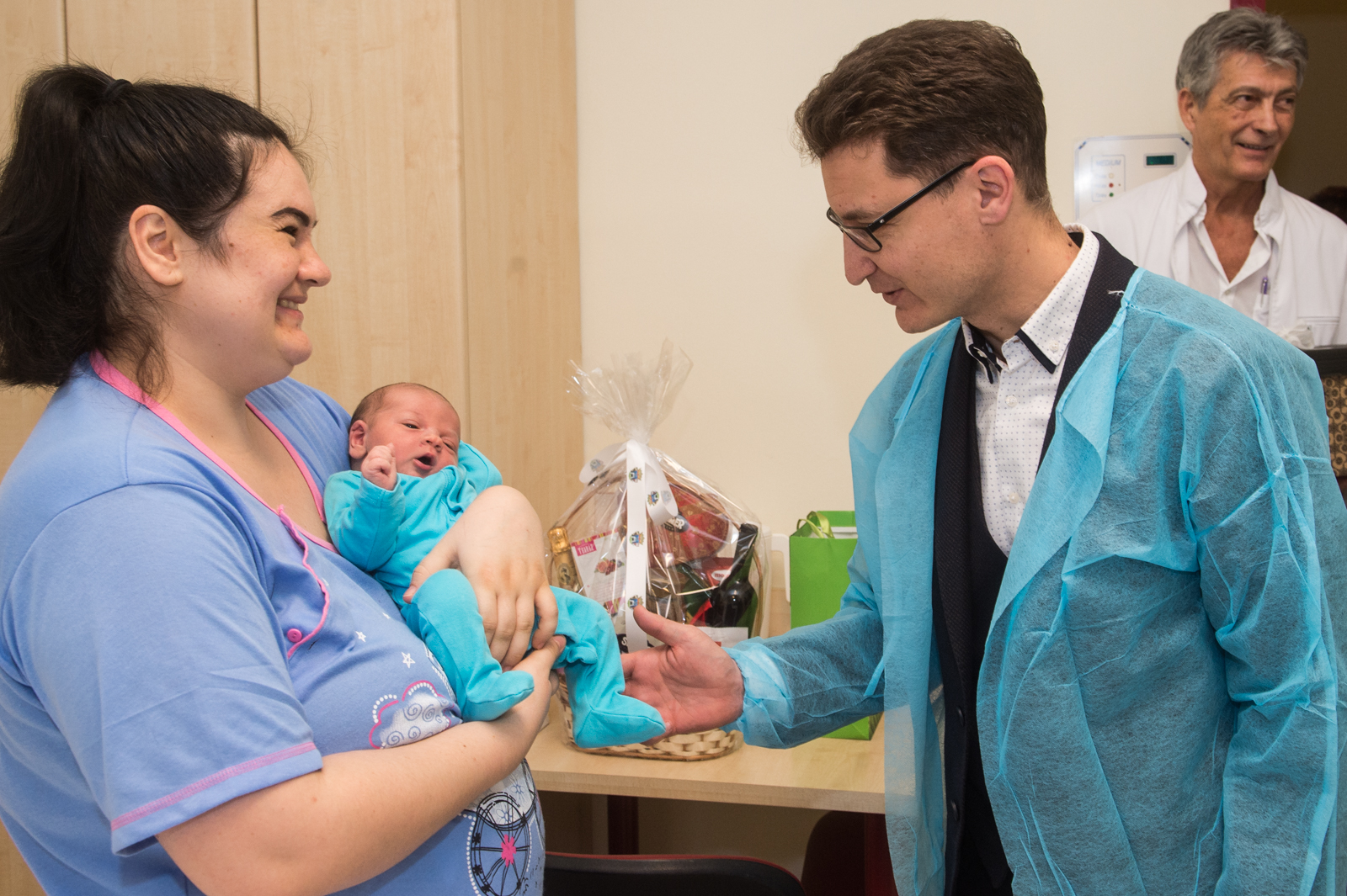 „Az év első fehérvári babáján keresztül szeretnénk mindenkinek boldog új évet kívánni és kívánjuk azt is, hogy legalább annyi kisbaba szülessen idén is, mint tavaly. Az elmúlt évben 2500 gyermek született a Szent György Kórházban, ezen belül is sok új székesfehérvári polgár, akiknek ajándékcsomagot adunk át jelképesen és a város polgárává fogadjuk őket. Sok fotó és fénykép is érkezett ezekről a meghitt családi pillanatokról." – mondta el Cser-Palkovics András polgármester.Dr. Hagymásy László, a Szülészet-nőgyógyászati Osztály osztályvezető főorvosa elmondta, a kollégákkal együtt alakították ki azt a rendszert, ami a természetes szülészeti szemlélet gyakorlati megvalósítását szolgálja. A házaspárokat felkészítik a szülésre, nyitott szülőszobát működtetnek, így a hozzátartozók, apukák részt vehetnek a szülésnél, ahol biztosítottak az alternatív szülési lehetőségek is. Ezen túl biztosítják a korai anya-gyermek kapcsolatot is: rögtön a szülés után mellre helyezik az újszülötteket, és már az első egy órában is megszoptathatja gyermekét az édesanya, majd ezt követően 24 órán keresztül együtt lehetnek.