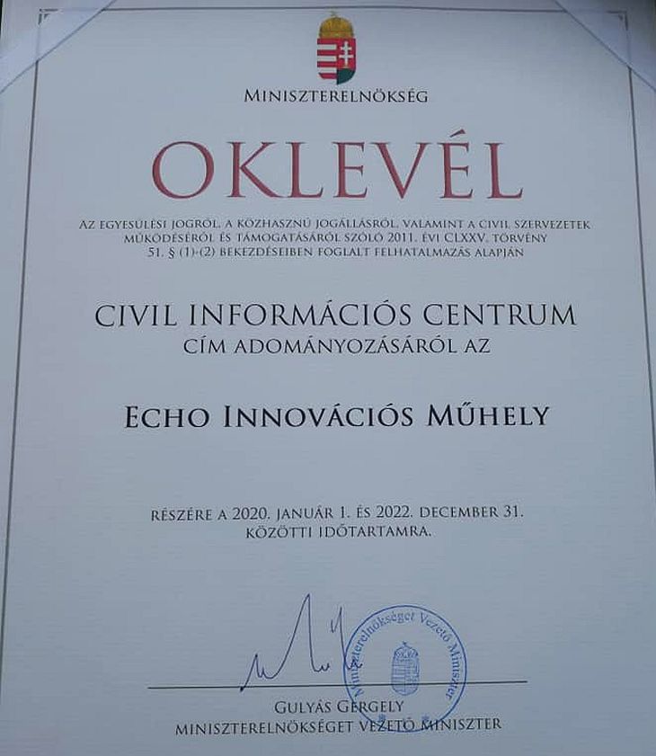 A múlt év végén újra meghirdette a Miniszterelnökség Civil Kapcsolatok és Társadalmi Konzultáció Főosztálya a „Civil Információs Centrum" címbírtokosi pályázatot, amelyre az Echo Innovációs Műhely is sikeres pályázatot nyújtott be. Fejér megyében az Echo Innovációs Műhely 2012 óta működteti a miniszter döntése alapján a Civil Információs Centrumot, partnerségben a megyében működő jelentősebb önkormányzatokkal, kiemelten a Fejér Megyei Önkormányzattal. A három évre szóló Civil Információs Centrum címbirtokosság 2019-ben lejárt, ezért a Miniszterelnökség kiírta a 2020-2022 évekre szóló pályázatot, melyen ismét sikeresen indult az Echo.