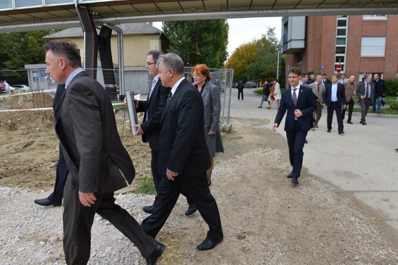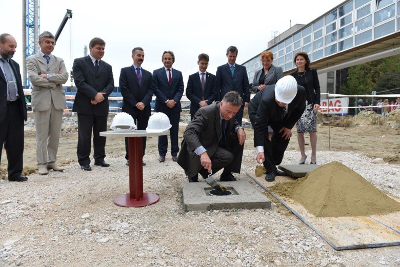 Pénteken délelőtt ünnepélyes keretek között letették az új, háromszintes, közel 6000 négyzetméteres épülettömb alapkövét. Itt kap majd helyet a központi műtőblokk és a központi intenzív egy része is. A felszín alatt elhelyezett időkapszula egy pendrive-ot is tartalmaz, amelyen valamennyi kórházi dolgozó neve megtalálható. Az alapkövet Dr. Csernavölgyi István főigazgató és Törő Gábor, a Fejér Megyei Közgyűlés elnöke helyezte el.