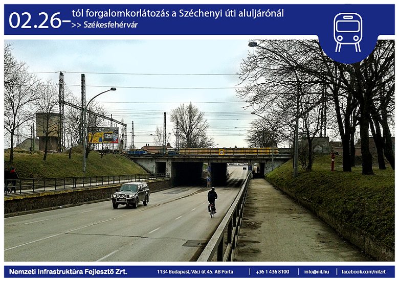 A sávszűkítés a munkálatok befejezéséig, előreláthatólag április közepéig marad érvényben. Az aluljáró korszerűsítése annak a nagyszabású beruházásnak a része, amelynek keretében a fehérvári vasútállomás és vágányhálózat is megújul.