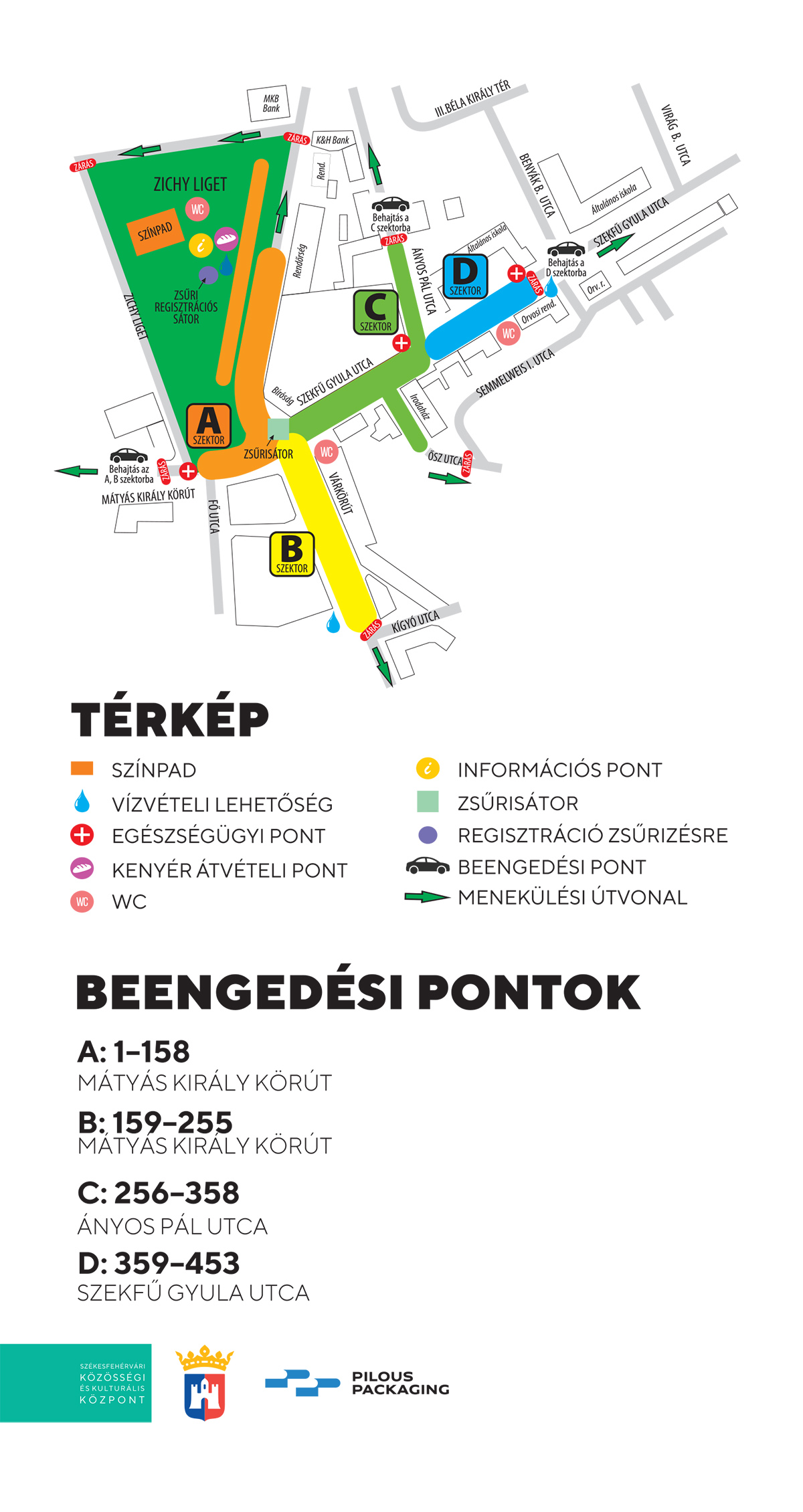 - Ányos Pál utca zárása a Rákóczi iskolától Salvator étterem vonaláig (behajtás a bank felől).