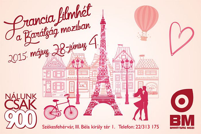 A nyár kezdetén francia filmhetet tart a Barátság mozi: vígjátékok, romantikus filmek, filmdrámák és családi mozik egyaránt helyet kaptak az elmúlt egy év terméséből rendezett válogatásban.Május 28-a és június 4-e között a Bazi nagy francia lagzi, az Elemi szerelem, a 3 szív és a Nicolas az iskolában című filmet is vetítik.