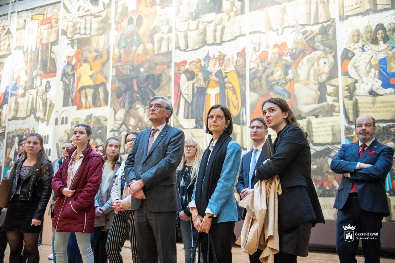 Dr. Cser-Palkovics András polgármester az Aba-Novák Vilmos által festett Magyar-francia történelmi kapcsolatok pannó közös megcsodálása előtt egy a műalkotásról szóló könyvvel ajándékozta meg Pascale Andréani nagykövetet. A Csók István Képtárban február óta újra látogatható monumentális alkotás és a város is mély benyomást tett a nagykövetre. „Nagyon örülök, hogy újra itt lehetek. Székesfehérvár egy gyönyörű város, ahova bármikor szívesen visszatérnék. Amikor legutóbb itt voltam, polgármester úr már mesélt nekem a városról. Akkoriban érte tűzvész a Notre Dame-ot, amelynek újjáépítéséhez Székesfehérvár is nagyösszegű adománnyal járult hozzá. Nagyon hálás vagyok ezért a segítségért is.”