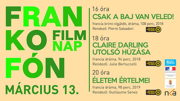 A Budapesti Francia Intézet és partnerei ismét elhozzák Magyarországra a legfrissebb frankofón filmeket. Francia, belga, svájci, kanadai, marokkói, román és tunéziai alkotások szerepelnek a filmnapok programján, amelyet Budapesten és tucatnyi magyarországi nagyváros mozijában rendeznek meg. Székesfehérváron a Barátság mozi ad otthont a vetítéseknek március 13-án, szerdán.