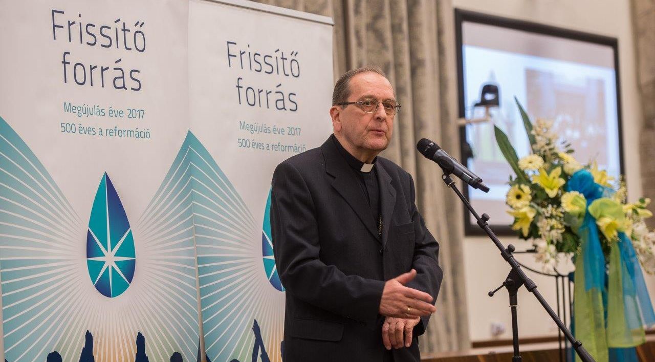 Steinbach József dunántúli református püspök kiemelte, hogy a reformáció 500 éves jubileuma közös tanúskodásra hív bennünket, egyháziakat és nem egyháziakat egyaránt. Szólt arról is, hogy sajátos helyzetben kerül sor a jubileumra. "A globalizáció, a szekularizáció korában a világvallások jelenlétének kontextusában elengedheteten, hogy bátran, szelíd, de határozott hitvallással jelenítsük meg ezt a tanúskodást." - fogalmazott Steinbach József, aki fontos feladatnak nevezte a közös bűnbánattartást. "Azért imádkozom a bűnbánat kapcsán, hogy az Úr segítsen minket abban, hogy tovább ne szabdaljuk az egyetemes anyaszentegyház testét." - tette hozzá a református püspök.