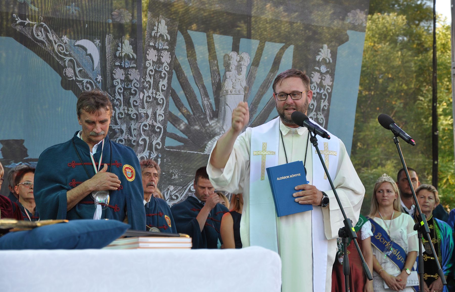 Az ünnepségen Tornyai Gábor plébános áldotta meg a borrendek zászlósborait. Felidézte a szőlőtermesztő területeken régóta hagyományos Jánosáldást is: a hit szerint mindaz, amit az áldás elmondása előtt elfogyasztottuk, utólag már nem lesz mérgező. Az atya vidámságot kért és kívánt nemcsak a bortól, hanem minden jótól, amit az életünkben megtapasztalhatunk. Megáldotta a borrendek zászlait is, melyek köré közösségek épültek.