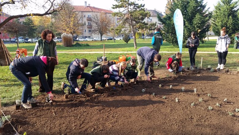 Közösen ültettek gyógy- és fűszer- növényeket az Arany János Óvoda, Általános Iskola, Speciális Szakiskola és EGYMI kerti munkás és virágkötő tanulói, valamint a Magyar Kerékpárosklub fehérvári szervezetének tagjai a Jávor Ottó téren. Az ültetett növényekkel - zsályákkal és levendulákkal - a Critical Mass logóját formázzák meg.