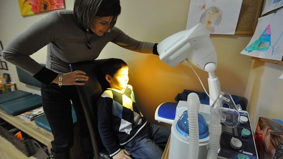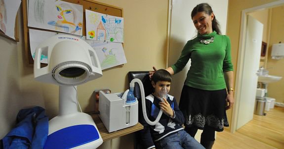 A hideg párásítás után fényterápia majd orrüregi öblítés következik, mindez gyermekbarát környezetben.