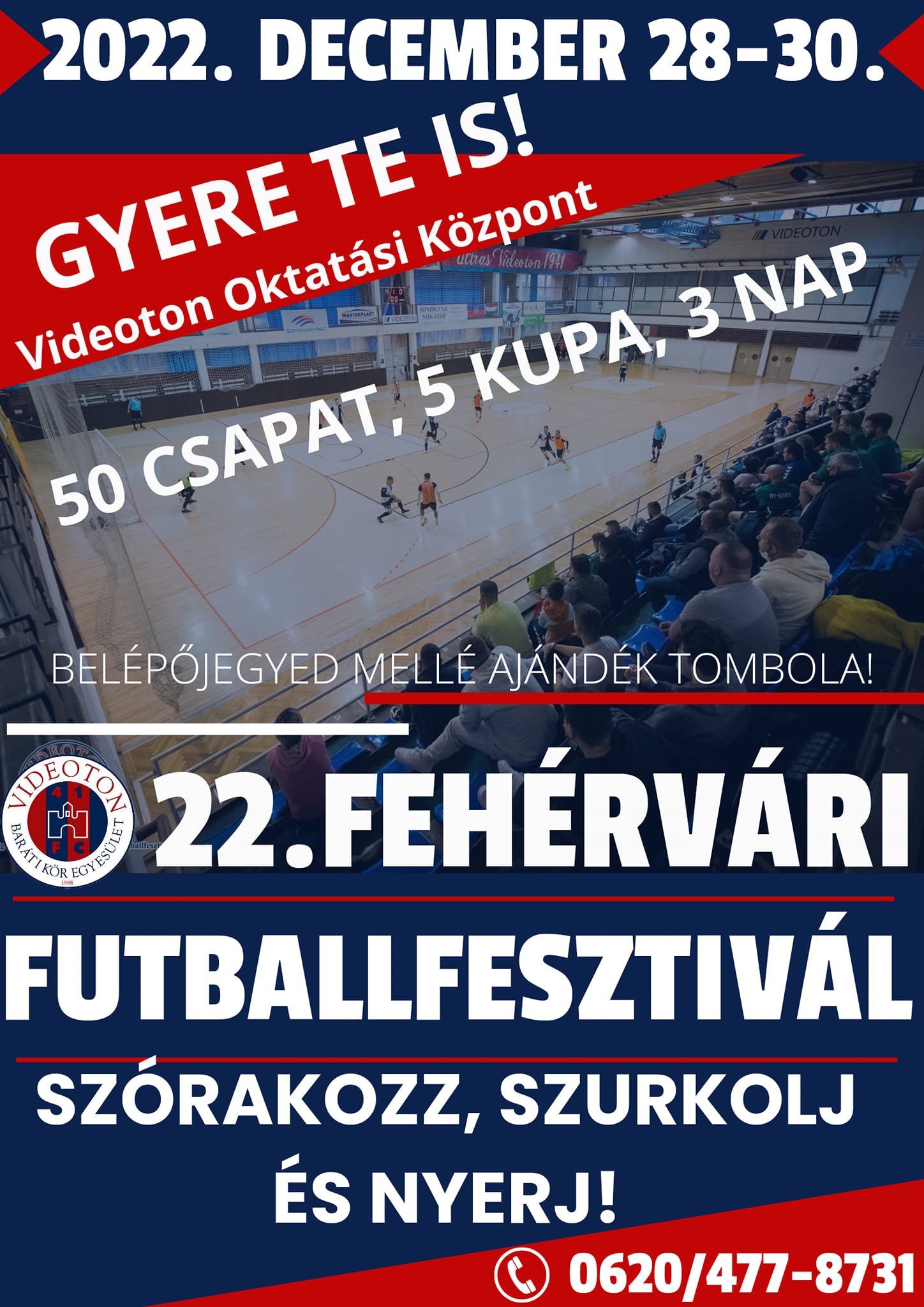 December 28. és 30. között, szerda reggeltől péntek estig fociznak majd a csapatok. A három nap alatt összesen hat kupában zajlanak majd a küzdelmek. Idén is megrendezik az Amatőr, a Profi, a 38+ Öregfiúk, a Női, valamint az U11 és a Ketrecfoci Kupákat. Érdekesség, hogy az Amatőr Kupa mezőnye idén többségében székesfehérvári csapatokra épül, de a Profi Kupában is több helyi csapat lesz az elmúlt évekhez képest. A torna zárónapján, december 30-án, pénteken este kerül sor az idei gálamérkőzésre: a MOL Fehérvár FC szakmai stábja és az idén 30. születésnapját ünneplő, Red-Blue Devils szurkolói csoport feszül egymásnak a parketten.