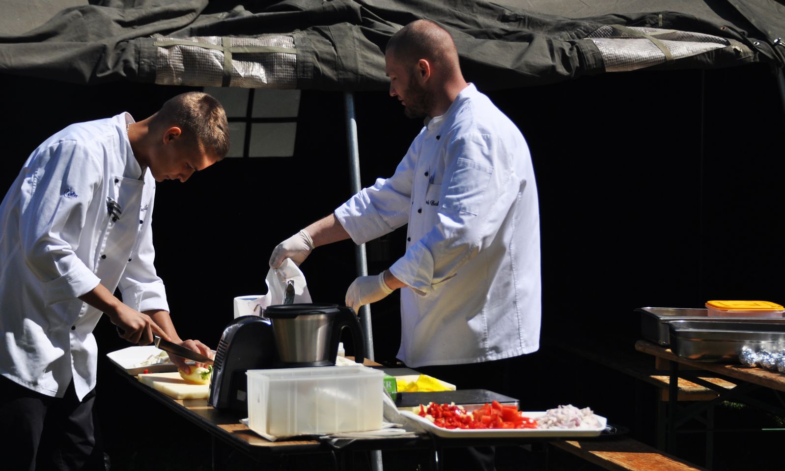 Ismét gasztrocsatára gyűltek össze a diákok a Deák Ferenc Kereskedelmi és Vendéglátóipari Szakképző Iskolában. Ezúttal a mesterek és tanítványok egy csapatot alkotva vívták meg a csatát, a szakácsok, a cukrászok és pincérek is érdekes feladatokat kaptak. A szakácsoknak szabadtéri technológiával készült ételeket kellett elkészítenie szabadon választott alapanyagokból. Zelei Eszter igazgató-helyettes, a Gasztro Klub alapítója elárulta, hogy volt aki azért igényet áramot is és a bográcsok mellett fel-feltűntek olyan modernebb konyhai eszközök, mint a sous-vide gép. Ott jártunkkor is látszott, hogy nem paprikás krumpli rotyog a bográcsokban, volt aki pásztortarhonyát készített báránygerinccel.