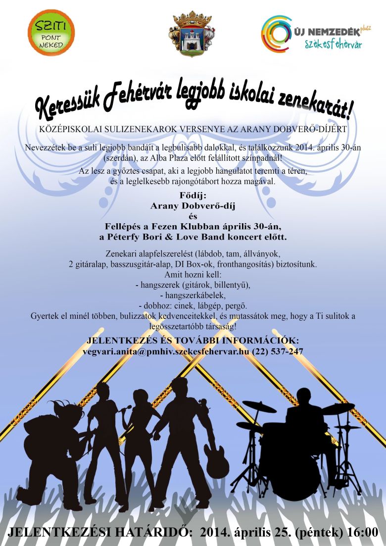 A diákoknak lehetőségük nyílik olyan önismereti tesztek kitöltésére, melyek nagy segítséget jelenthetnek a pályaválasztást, illetve saját maguk megismerését illetően is. 14.00 órakor kezdődik a ballagási programsorozat teljesen új eleme, a középiskolai sulizenekarok versenye. Az lesz a nyertes, aki a legjobb hangulatot teremti a téren, és a leglelkesebb rajongótábort hozza magával. A győztes csapat elnyeri az Arany Dobverő-díjat és szerdán este fellép a Péterfy Bori & Love Band koncert előtt a FEZEN Klubban. A versenyre április 25-én, pénteken 16.00 óráig várják a jelentkezéseket. A sulizenekarok versenye meglepetés műsorral zárul mintegy száz diák részvételével.