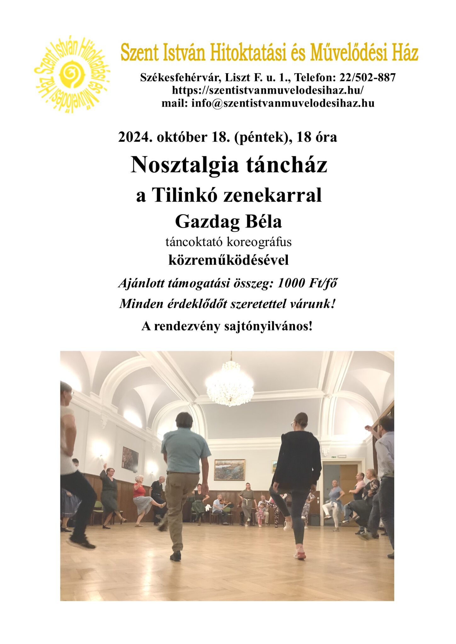 Október 18-án, pénteken 18 órai kezdettel rendezi következő nosztalgia táncházát a Tilinkó Zenekar. Az 1976-ban megalakult együttes programján Gazdag Béla táncos, koreográfus oktatja a lépéseket, a belépéshez ajánlott támogatási összeg 1.000 forint.