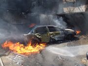A garázsban lévő égő személygépkocsit a tűzoltók csak úgy tudták teljesen eloltani, hogy a tűzoltóság terepjárójával kivontatták a helyiségből. Ekkor az Opel Astra tűzben felhasadt üzemanyagtartályából folyni kezdett a még bent lévő benzin, amely a talajon lévő vízen tovább égett. Az égő üzemanyagot a tűzoltók az oltóvízbe kevert habbal gyorsan eloltották.