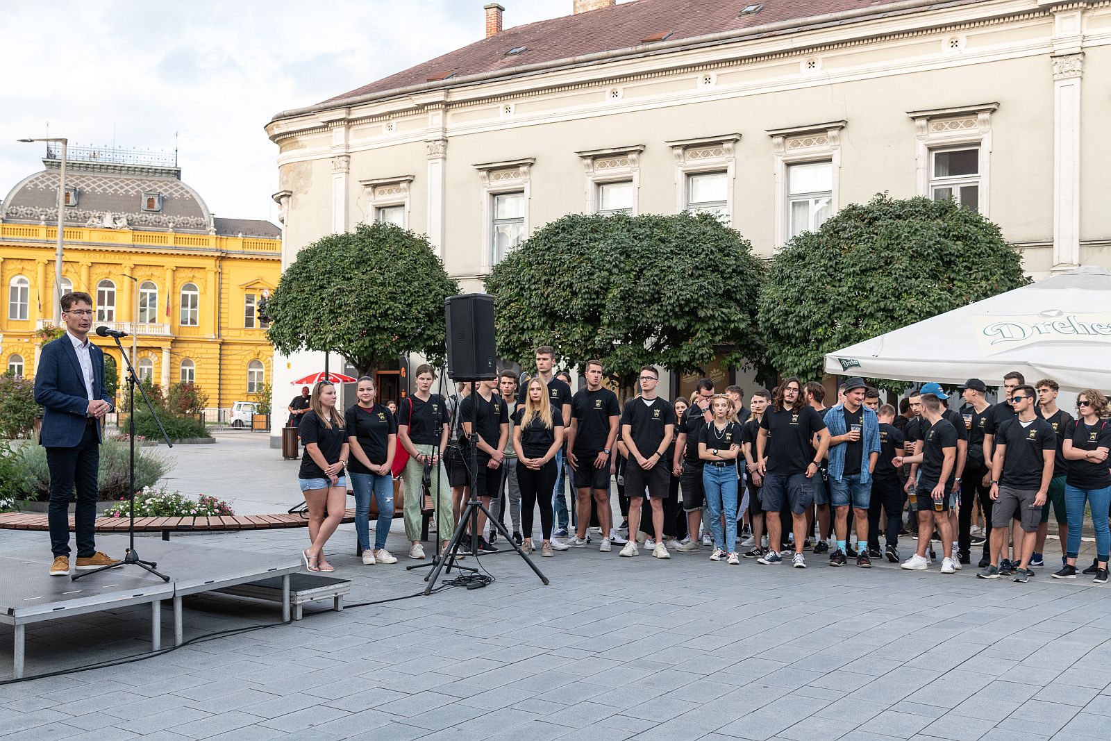 Kellemes nyárvégi időjárásban várta a Hotel Magyar Királyi előtti téren a felsőoktatási tanévnyitót azok a diákok, akik idén Székesfehérváron kezdik meg egyetemi éveiket.