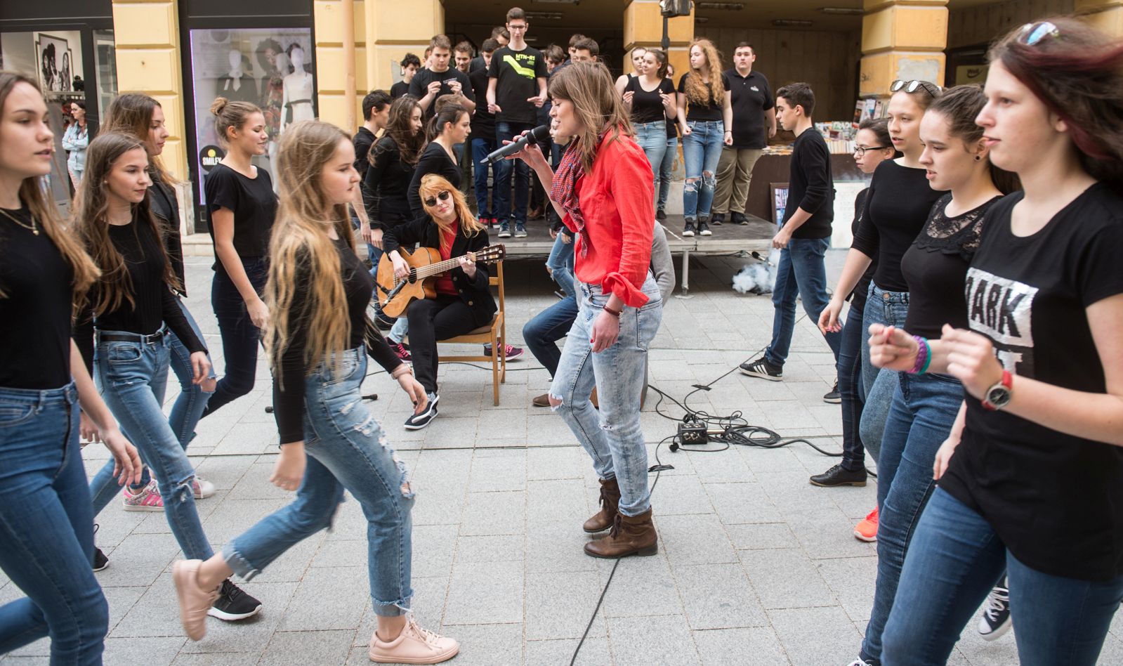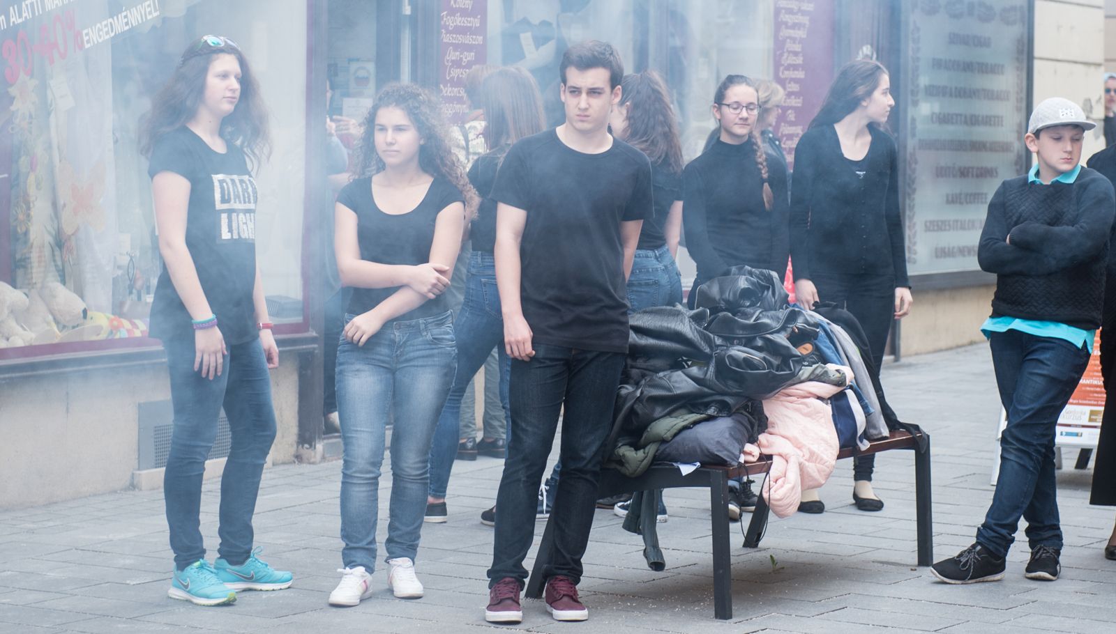 A nagyszabású kiállítás beharangozása a Vezúv kitörését megidéző diák- flashmobbal kezdődött a Fő utcán. Az "előre robbanunk az ősi tűzzel" szlogennel meghirdetett villámcsődületet a Ciszterci Szent István Gimnázium diákjai mutatták be Unger Ágnes, Pölöskei Klára és Ihász György közreműködésével.