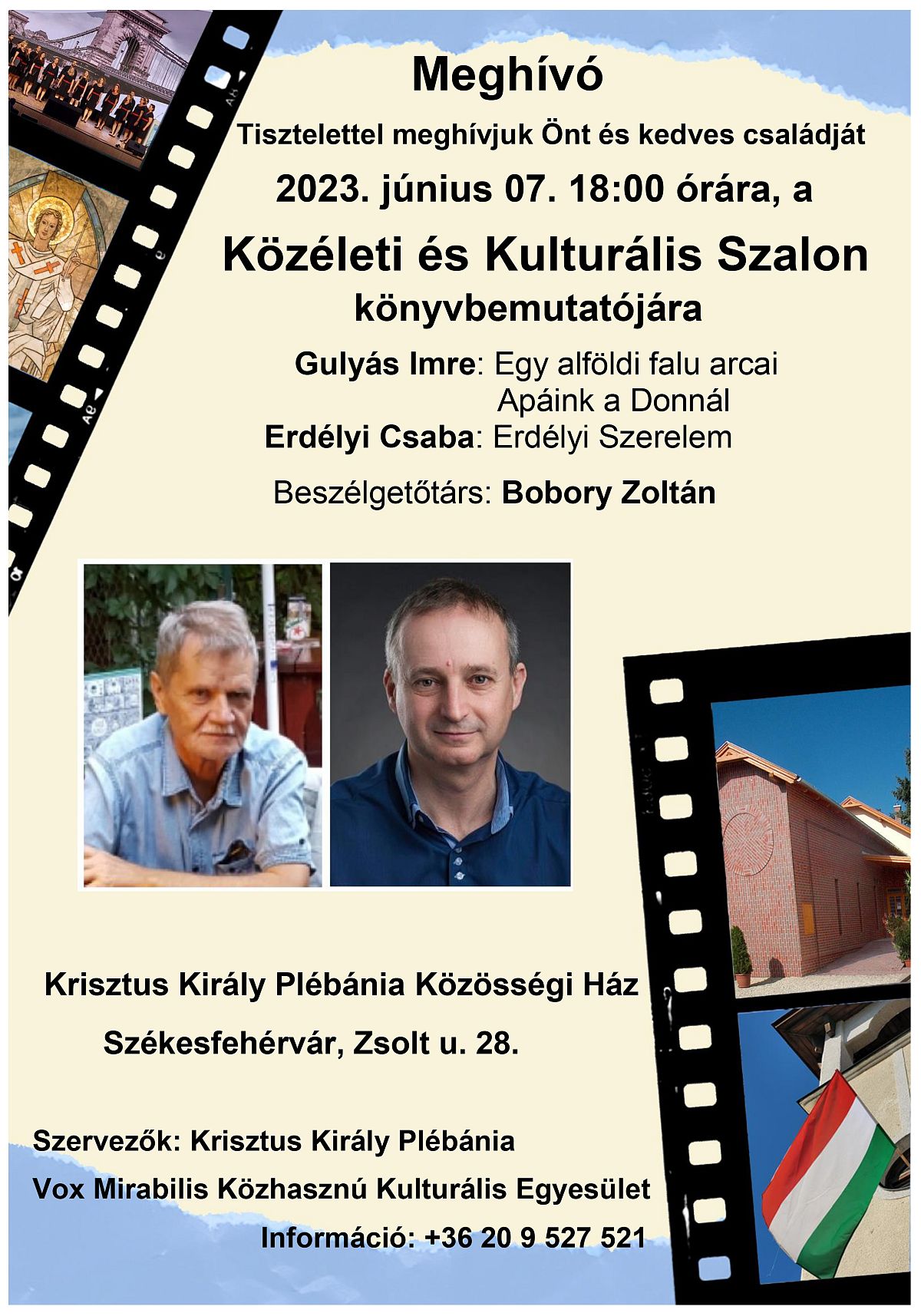 Szeretettel várnak minden érdeklődőt a Közéleti és Kulturális Szalon következő könyvbemutató programjára, amely a Zsolt utcai Krisztus Király Plébánia Közösségi Házában lesz 2023. június 7-én, szerdán, 18:00-kor. Bobory Zoltán Gulyás Imrével és Erdélyi Csabával beszélget.