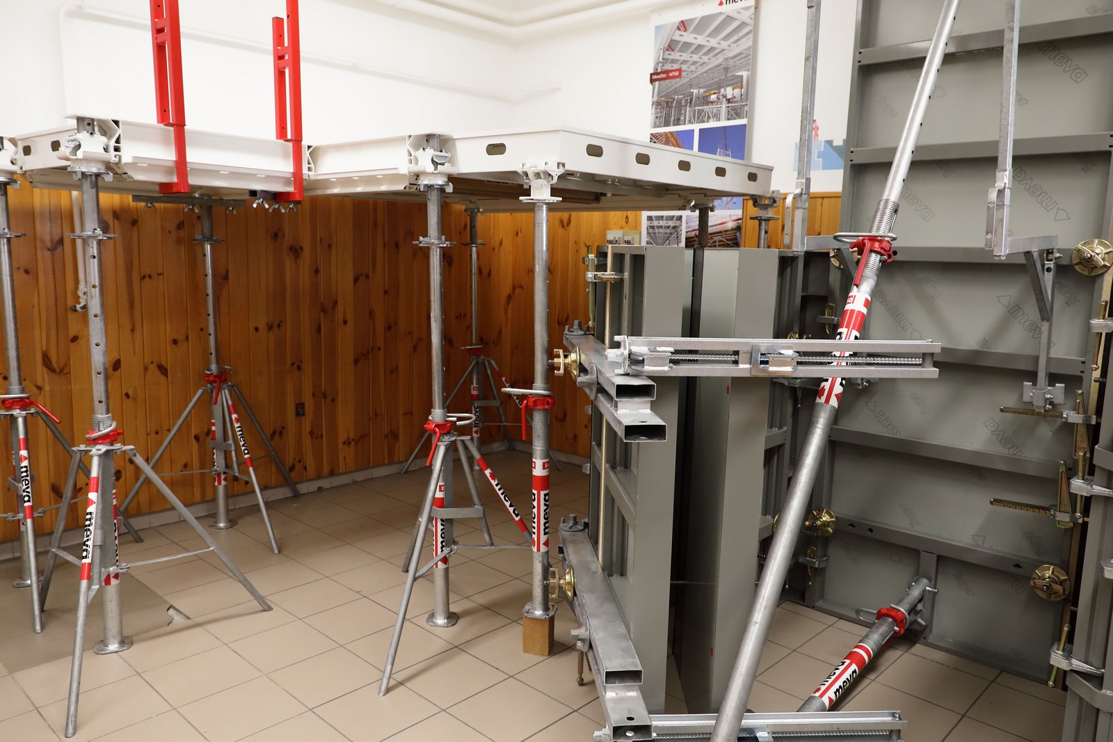Próbáltam olyan zsalukészleteket kiválasztani, amik a leggyakrabbak és a legjobban hasznosíthatók a mai építkezések során - hangsúlyozta Oberrecht Kálmán a MEVA oktatási referense. "Így választottuk ki az Alufix nevű falzsalunkat, ami egy kézi zsaluzat, a legkorszerűbb, legkönnyebb megoldásokkal. Ezeken már mindenhol műanyag a zsaluhéj, ami ma már a látszó látványbeton felületek képzésének a legkiválóbb anyaga."