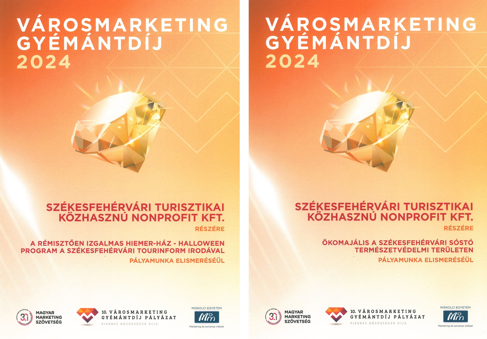 A Halloweeni Rémisztően izgalmas Hiemer-ház és az Ökomajális a Székesfehérvári Sóstó Természetvédelmi Területen programok marketingtevékenységeiért nyert el két újabb Marketing Gyémántdíjat a Székesfehérvári Turisztikai Közhasznú Nonprofit Kft.