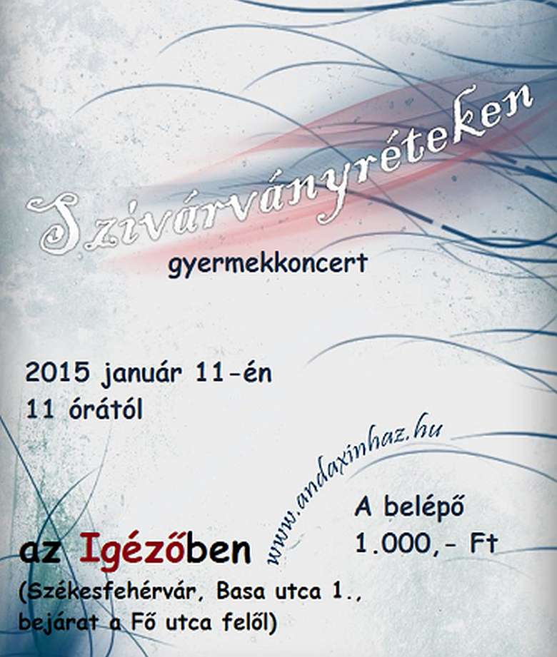 2015. január 11-én, vasárnap az Andaxínház ad gyermek- koncertet Szivárvány- réteken címmel a fehérvári Igézőben (Basa utca 1.). A zenei repertoár gerincét finn gyermekversek és Simai Mihály József Attila díjas szegedi író költő verseire komponált dalok alkotják. Jegyek elővételben az Igéző jegypénztárában válthatók. A délelőtt 11 órakor kezdődő eseményre a belépő 1000 Forintba kerül.