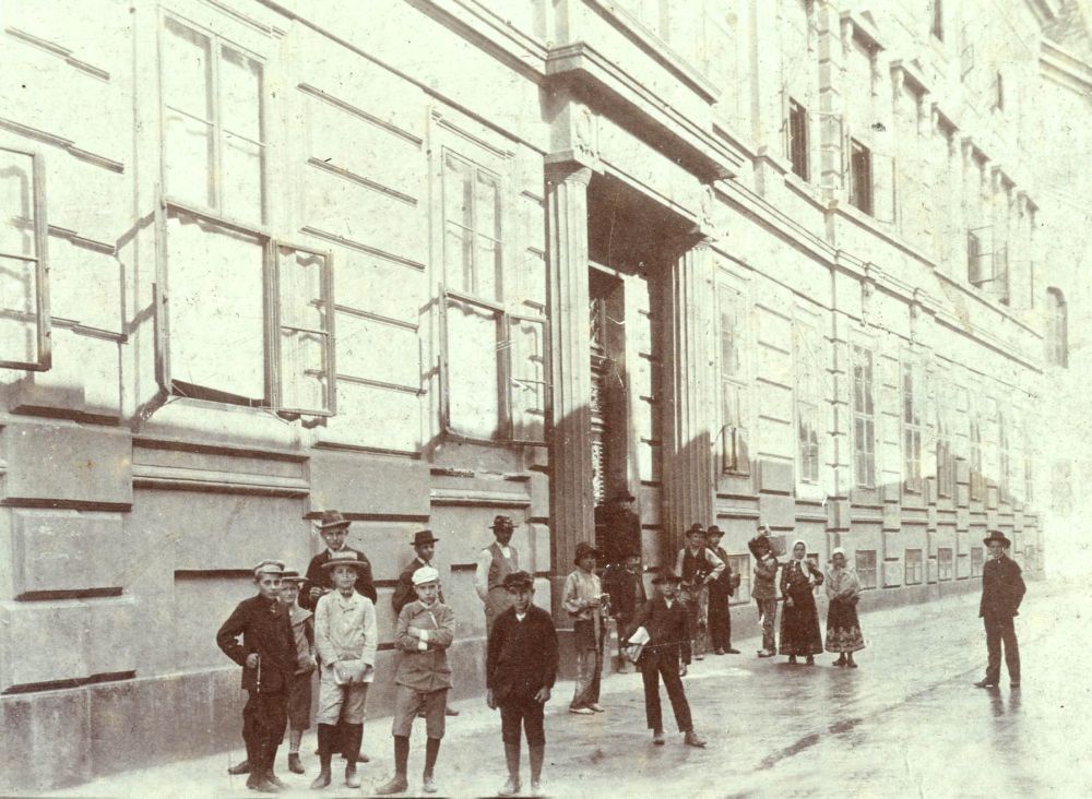 Pete Gyula 1910 körül készített fényképet a gimnázium kapujában álló gyerekekről. A felvétel rákerült az ez évben végzett Lánczos Kornél és osztálytársai tablójára.
