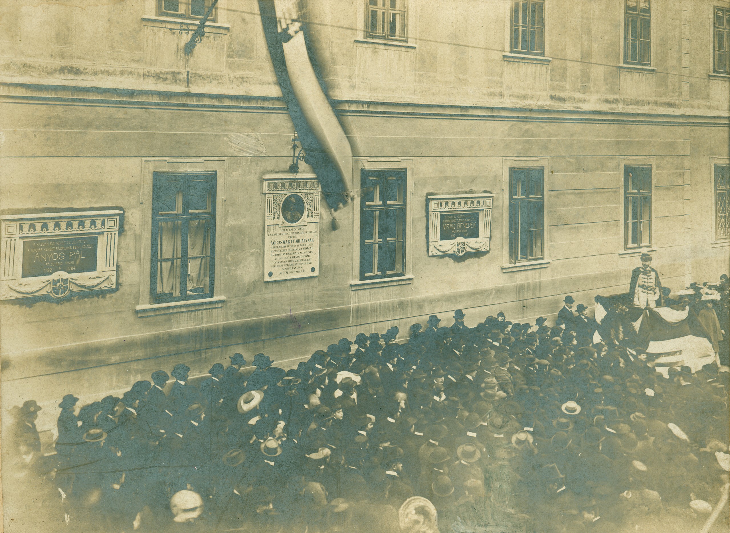 Ányos Pál és Virág Benedek emléktábláit 1905-ben helyezték el a rendház homlokzatán. Pete Gyula fényképész az ünnepélyes avatást megörökítő felvételén látható a jeles növendék, Vörösmarty Mihály 1900-ban, születésének 100. évfordulóján hasonló ünnepség keretében felavatott táblája is.