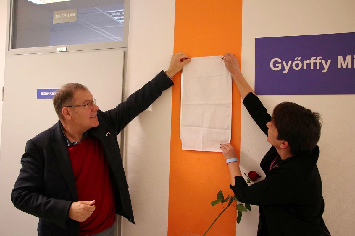 „Győrffy Miklós már életében legenda volt, büszke vagyok rá, hogy nem csupán kollégák, intézményalapítók, de barátok is voltunk. Az egyetem egykori Vörösmarty Rádiójának munkatársai, egyetemista gyakornokai, diákjai örökké hálásak lesznek az útmutatásokért, amelyek elsősorban a szakmáról szóltak, ám emberségre is tanítottak Emlékét nem csupán ez az emléktábla fogja őrizni a Kodolányi János Egyetem falán, tavasszal egy emlékkonferenciát rendezünk és egy könyvet is megjelentetünk, így tisztelegve méltóképpen egyetemünk média tanszékének alapítójára, tanszékvezetőjére, rádiósok és televíziósok generációinak mesterére.” – tette hozzá Dr. Szabó Péter, a KJE rektora.