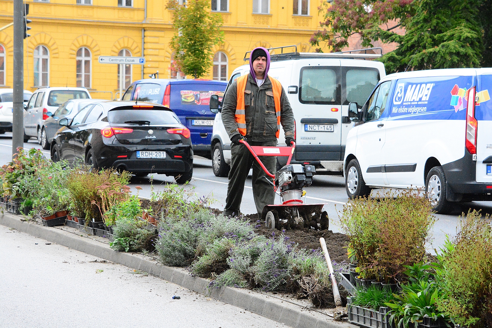 Kékszakállt, bíborkasvirágot, kokárdavirágot, macskamentátveronikát, díszfüveket, öszirózsákat, levenduát, cickafarkot és varjúhájt ültettek a kertészek a zöld sávba.