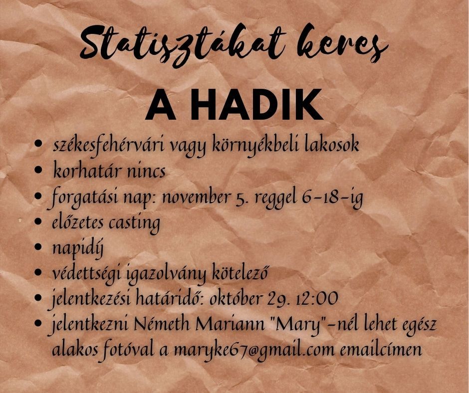 Szikora János kérdésre elmondta, hogy a film főszerepét Trill Zsolt alakítja, mellette a székesfehérvári Vörösmarty Színház több színésze, Sághy Tamás, Sarádi Zsolt, Juhász Illés, Gáspár Sándor, Kiss Diána Magdolna, Varga Lili, Ballér Bianka és Derzsi János játszik benne.
