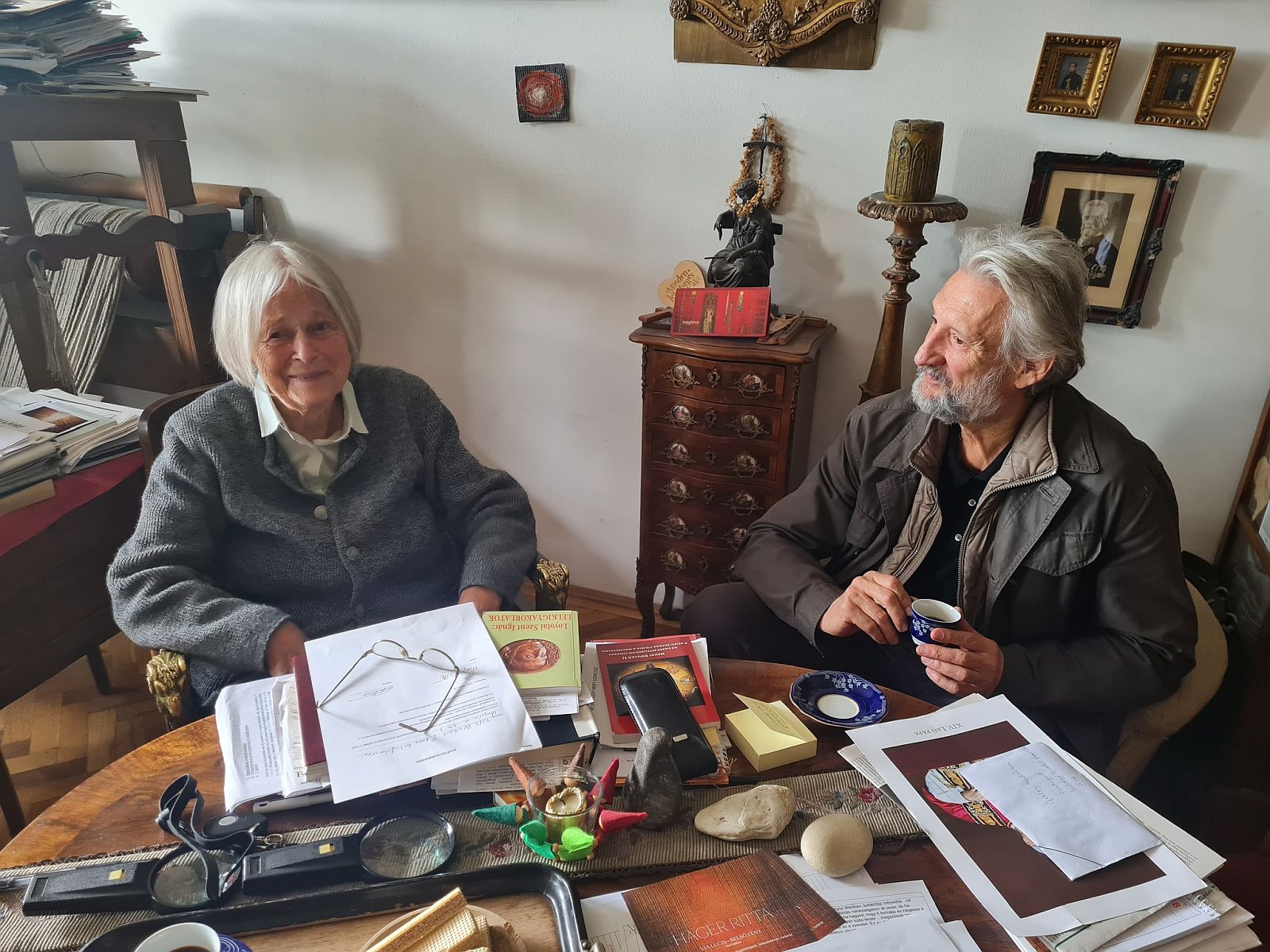 Hager Ritta textilművész és a kiállítás kurátora, Tóth Norbert.