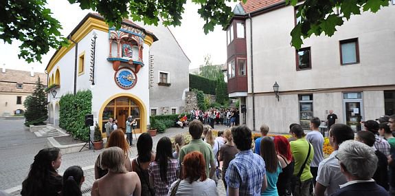 A Kossuth udvarban található Órajátékról Kovács Jenő beszélt. A Székesfehérvár nevezetességei közé szervesen beépült látványosság ötletgazdája és megvalósítója büszke arra, hogy az Órajáték melletti ünnepség is a városi ballagási programok része lett. Mint elmondta, a ballagási időszakban az iskolai életet jelképező figurák (krónikás, világi tanító, világi diák, 1848-ból „Az ifjúság óhajtása-legyen boldog a haza.”, 1900-as évek diákja, professzor) jönnek elő és ballagási dallammal várja a Kossuth udvarban sétálókat.