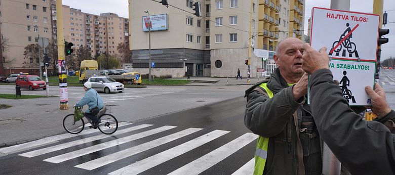 Hajtva tilos! Tolva szabályos! - táblák a zebrák mellett