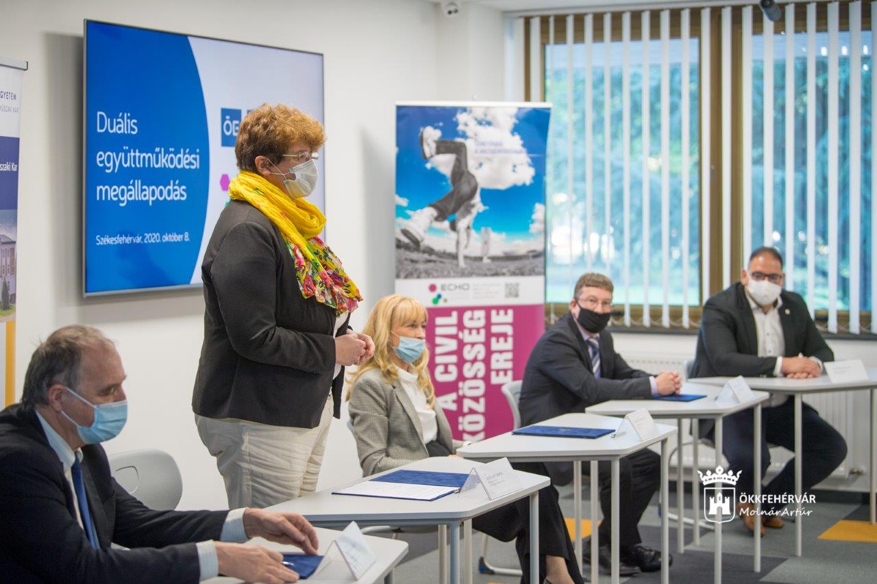 Székesfehérvár a felsőoktatás tekintetében is kiemelkedik – mondta Mészáros Attila alpolgármester. Az Óbodai Egyetem Alba Regia Műszaki Kara néhány éve elsőként kezdte a duális képzést, ami jó választ adott arra a problémáéra, hogy hogyan lehet gyakorlatorientált végzősöket képezni, akik egyből megállják a helyüket a munkaerőpiacon. „Köszönöm az Echonak, hogy évek óta együttműködnek az egyetemmel különböző projektekben.” - hangsúlyozta Fehérvár alpolgármestere. A duális képzés a város jövője szempontjából is fontos, hogy ki lehessen elégíteni a város gazdaságának munkaerőigényét.