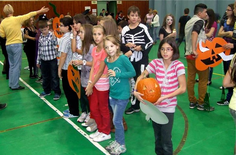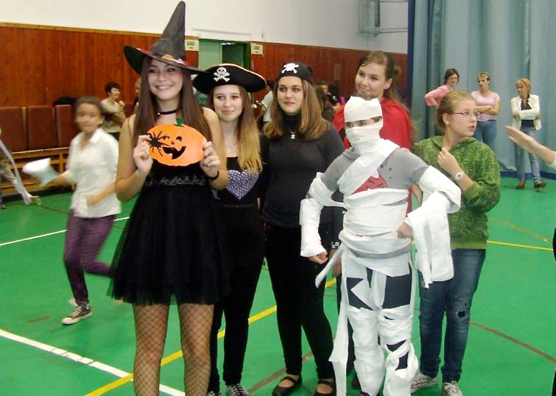 2013. október 25-én Halloween-partit tartottak a felső tagozatosok számára. Péntek délután kezdődött a forgatag, ahol gazdag programkínálatból választhattak a diákok. Próbára tehették magukat a szerencsekerékkel, melynél a megfejtések természetesen angol nyelven szóltak, hűen a Halloween eredetéhez. Nem maradhatott el a töklámpás készítése sem! Azon túl, hogy a diákok kellemesen szórakoztak, jó alkalom volt ez a nap az angol nyelv gyakorlására, valamint, hogy megismerkedjenek az angolszász hagyománnyal.