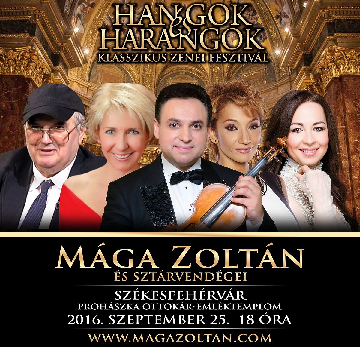 Mága Zoltán és a Budapesti Primarius Szimfonikus Zenekar ad közös koncertet a Prohászka Ottokár templomban, a Hangok és harangok sorozat keretén belül. A vasárnap este 18.00 órakor kezdődő jótékonysági koncertre a belépés ingyenes lesz, de adományokat gyűjtenek egy, a Székesfehérvári Egyházmegye által megjelölt cél támogatására.