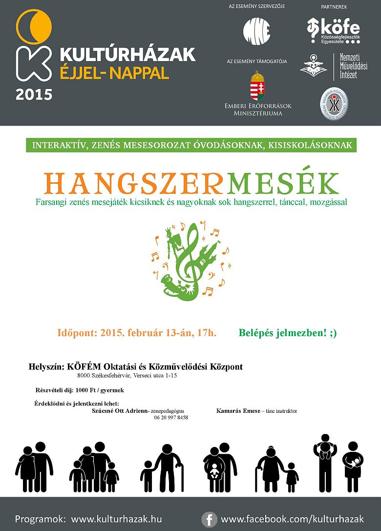 2015. február 13-án, pénteken délután 17 órakor a „Kultúrházak Éjjel – Nappal” országos programsorozat keretében kezdődik a „Farsangi Hangszermesék”. Az interaktív farsangi zenés mesejátékon sok hangszerrel, tánccal, mozgással várják a jelmezben érkező óvodásokat és kisiskolásokat. A Köfém Művelődési Házban szervezett rendezvényre 1000 Forintba kerül a belépő.