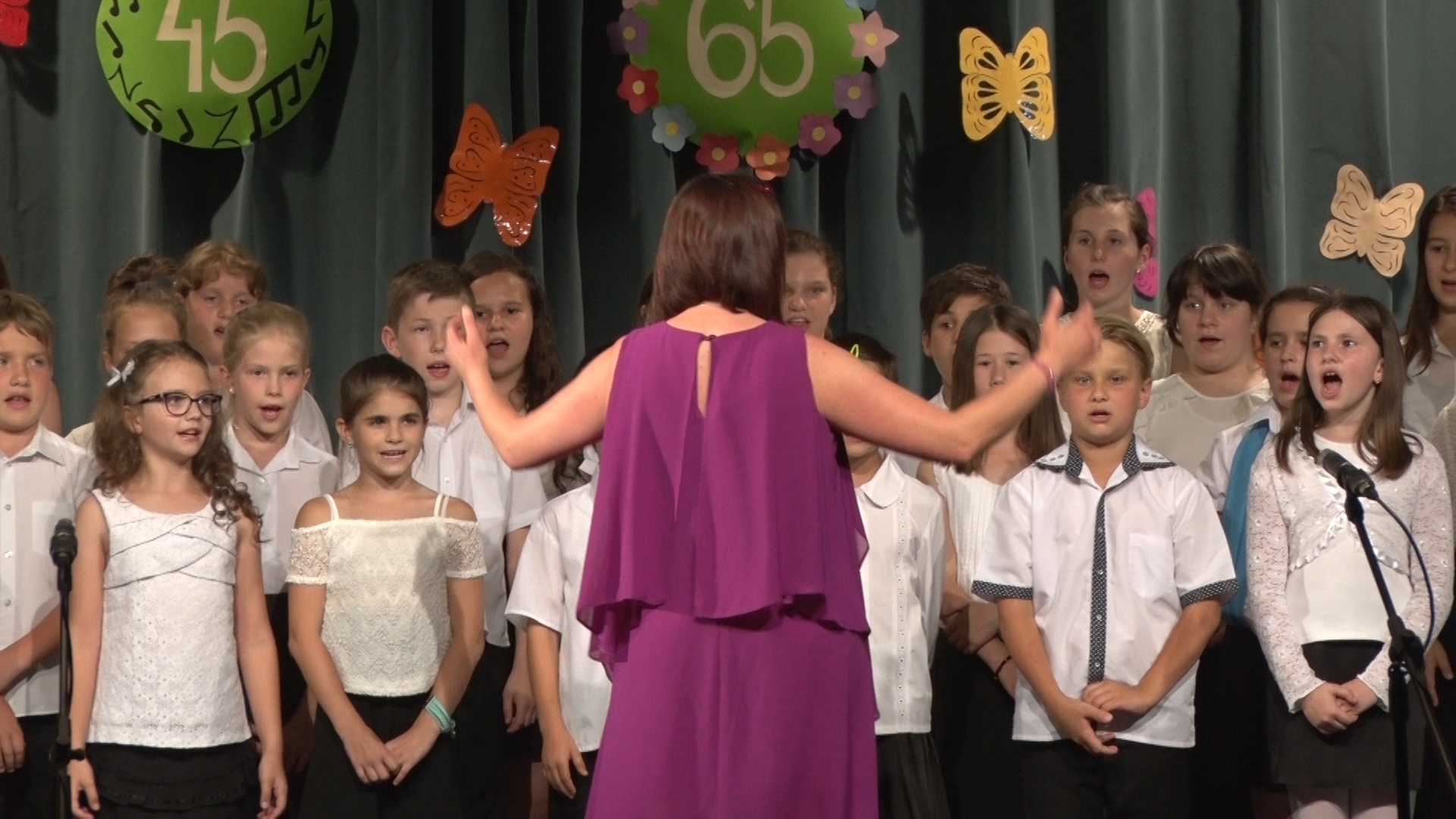 E gondolatokkal mondott köszönetet az ének-zene tagozat elmúlt 45 évben elért sikereiért, a megteremtett értékekért, a hagyományok ápolásáért az iskola vezetője az egykori és jelenlegi pedagógusoknak. A hangversenyen népdalok és Kodály-művek csendültek fel a kórusok előadásában, a második osztályosok megelevenítették Gryllus Vilmos Maszkabálban szereplő figuráit, míg az első osztályosok egy olasz és egy francia gyermekdalt adtak elő eredeti nyelven. A koncertet a Pál utcai fiúk musical egyik jól ismert betétdala, a Mi vagyunk a grund zárta.